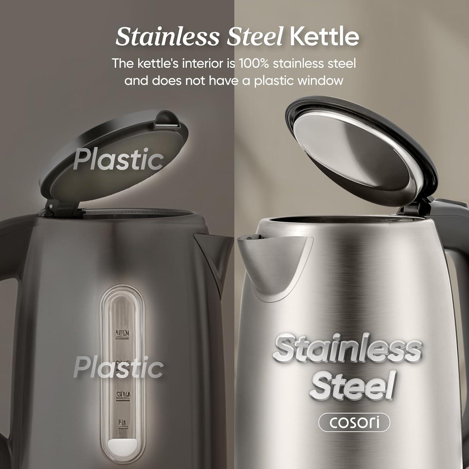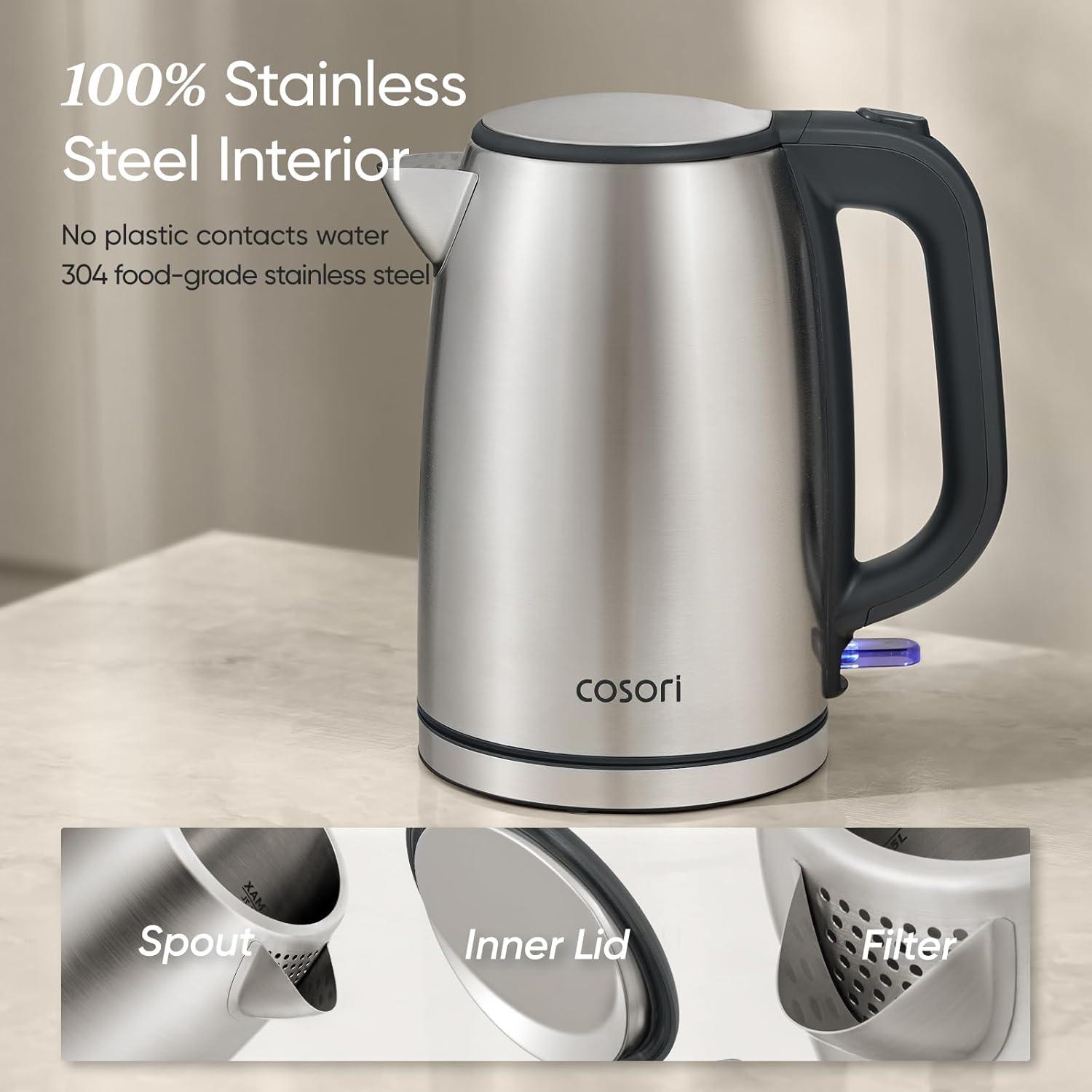 This electric kettle is made of all stainless steel by COSORI